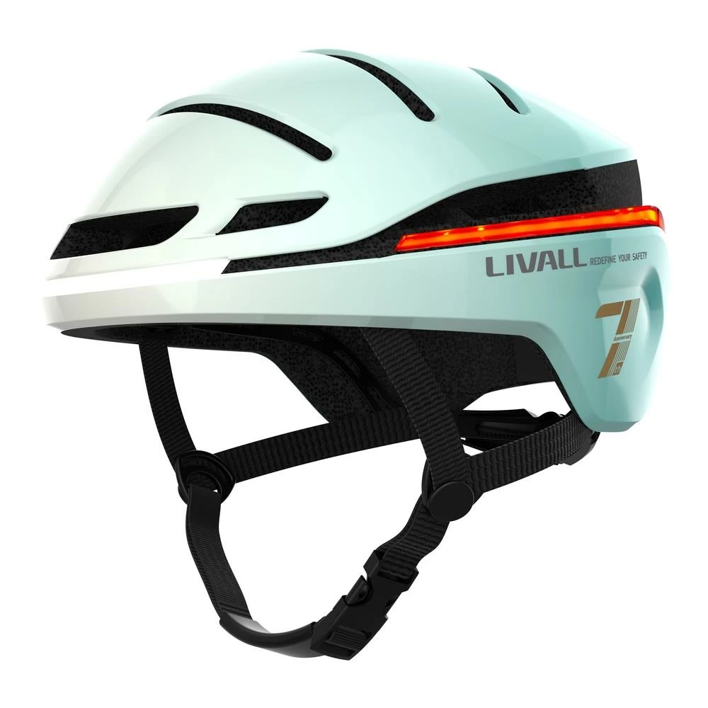 Livall EVO21 est un casque de vélo de route inspiré des casques aérodynamiques de contre-la-montre qui optimisent la résistance à l’air et réduisent la transpiration grâce à un système de canaux internes.