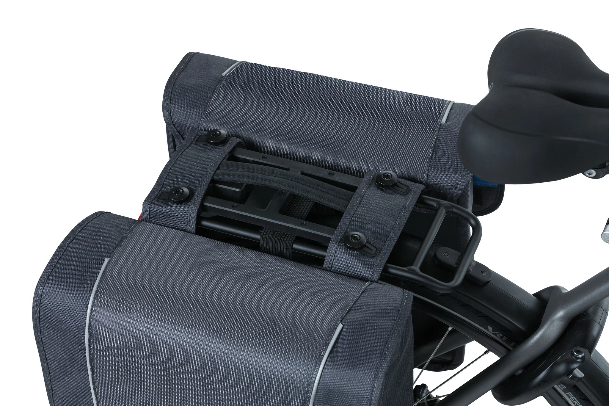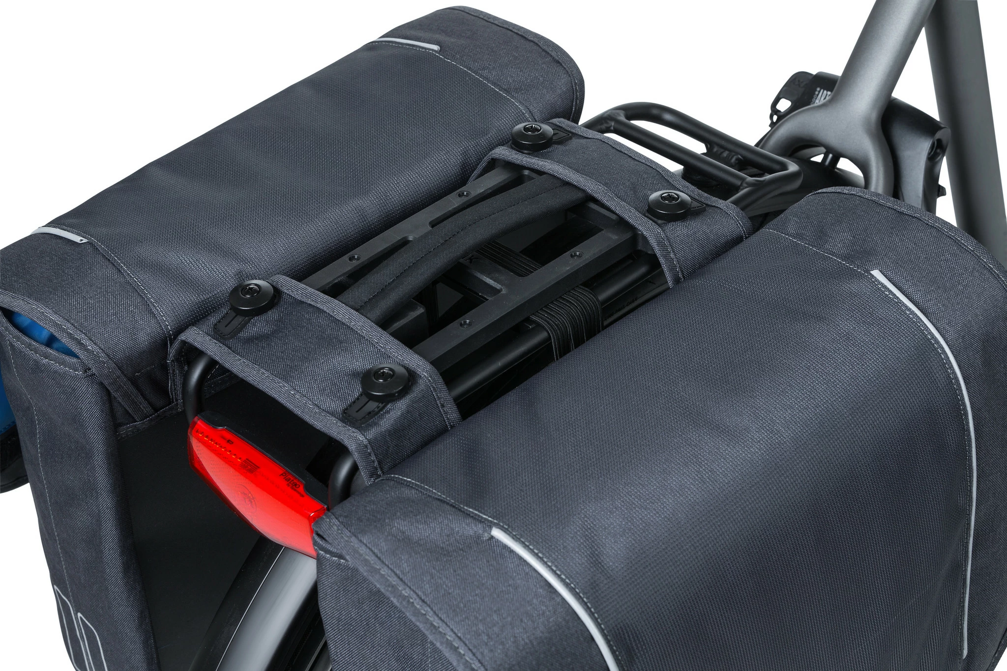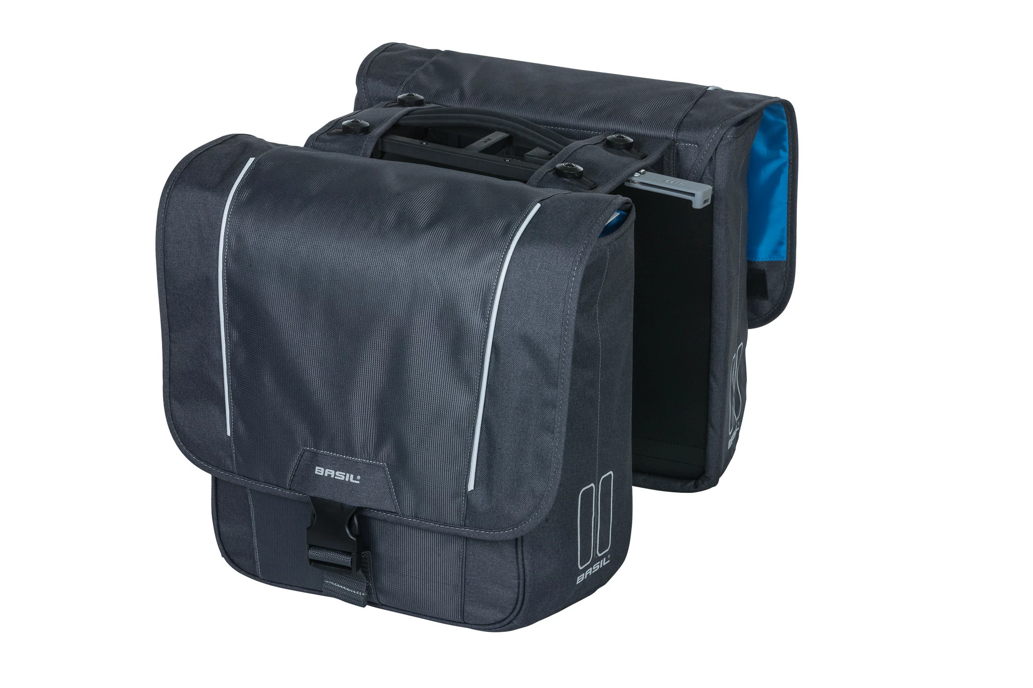 Sacoche double avec MIK système de Basil fabriqué en polyester hydrofuge.