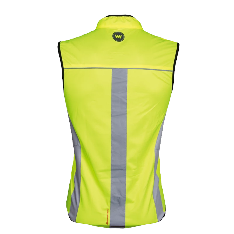 La veste sans manches WOWOW Maverick de la couleur jaune fluo est respirante et imperméable. Elle permet de vous rendre visible quel que soit votre moyen de transport (vélo, à pied…).